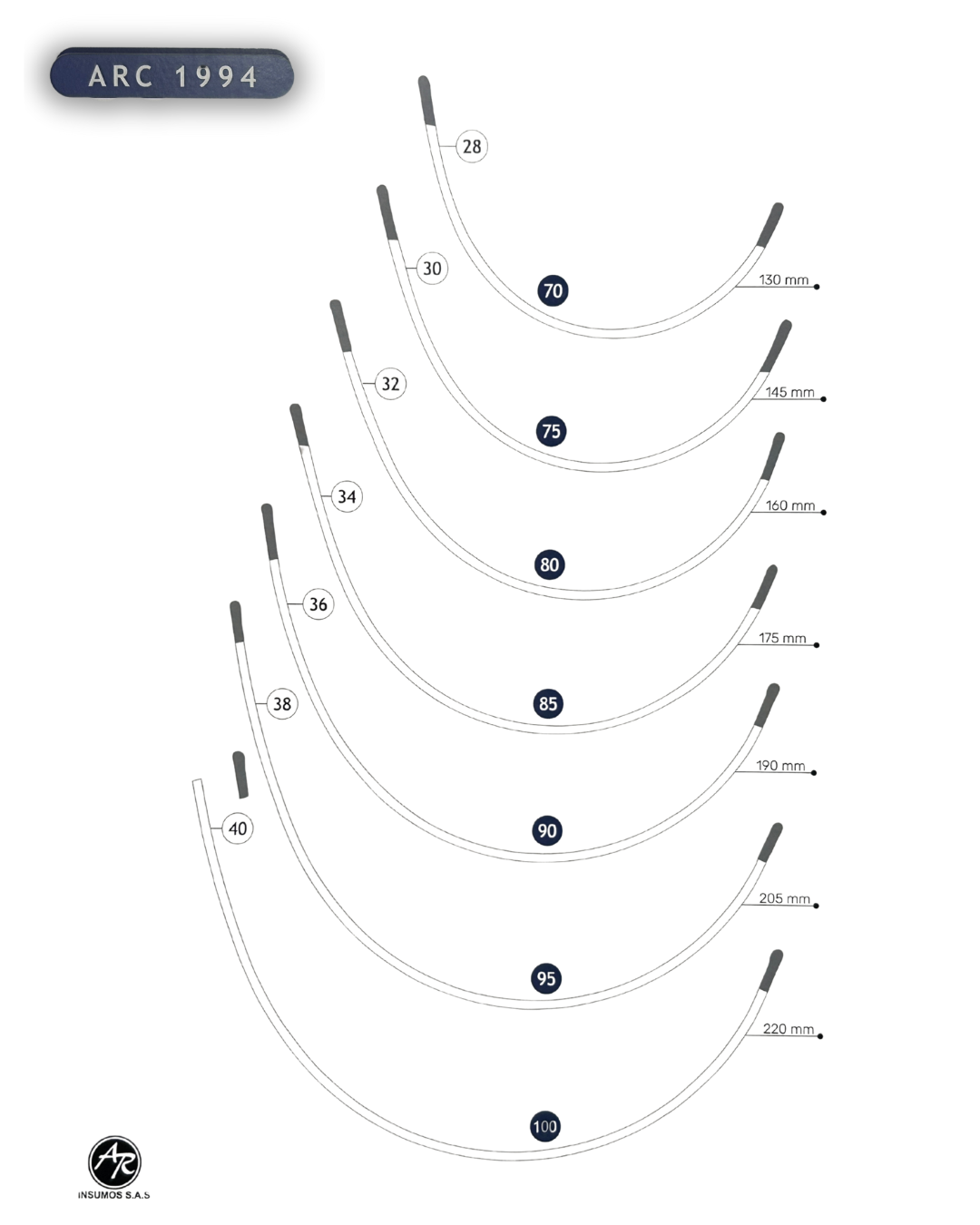 Arco de brasier Ref. 1994 (Tallas 28 a 40)El Arco Ref. 1994 está diseñado para garantizar un soporte firme y cómodo en la confección de brasieres, tops y prendas de corsetería. Su forma anatómica se adapta al busto ofreciendo realce, estructura y estabilidad en cada diseño.