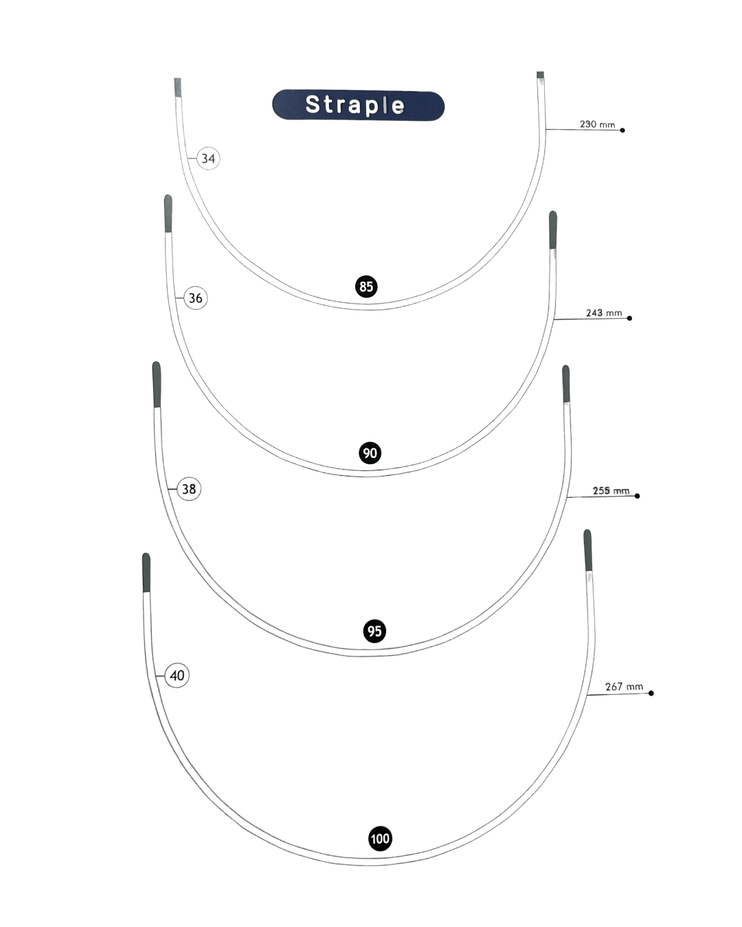 Arco strapless (Tallas 26 a 40)El arco strapless está diseñado especialmente para brasieres sin tirantes y prendas de corsetería que requieren soporte firme y seguridad adicional. Su estructura en acero de alta resistencia mantiene la forma del busto y garantiza estabilidad, incluso sin el uso de cargaderas.